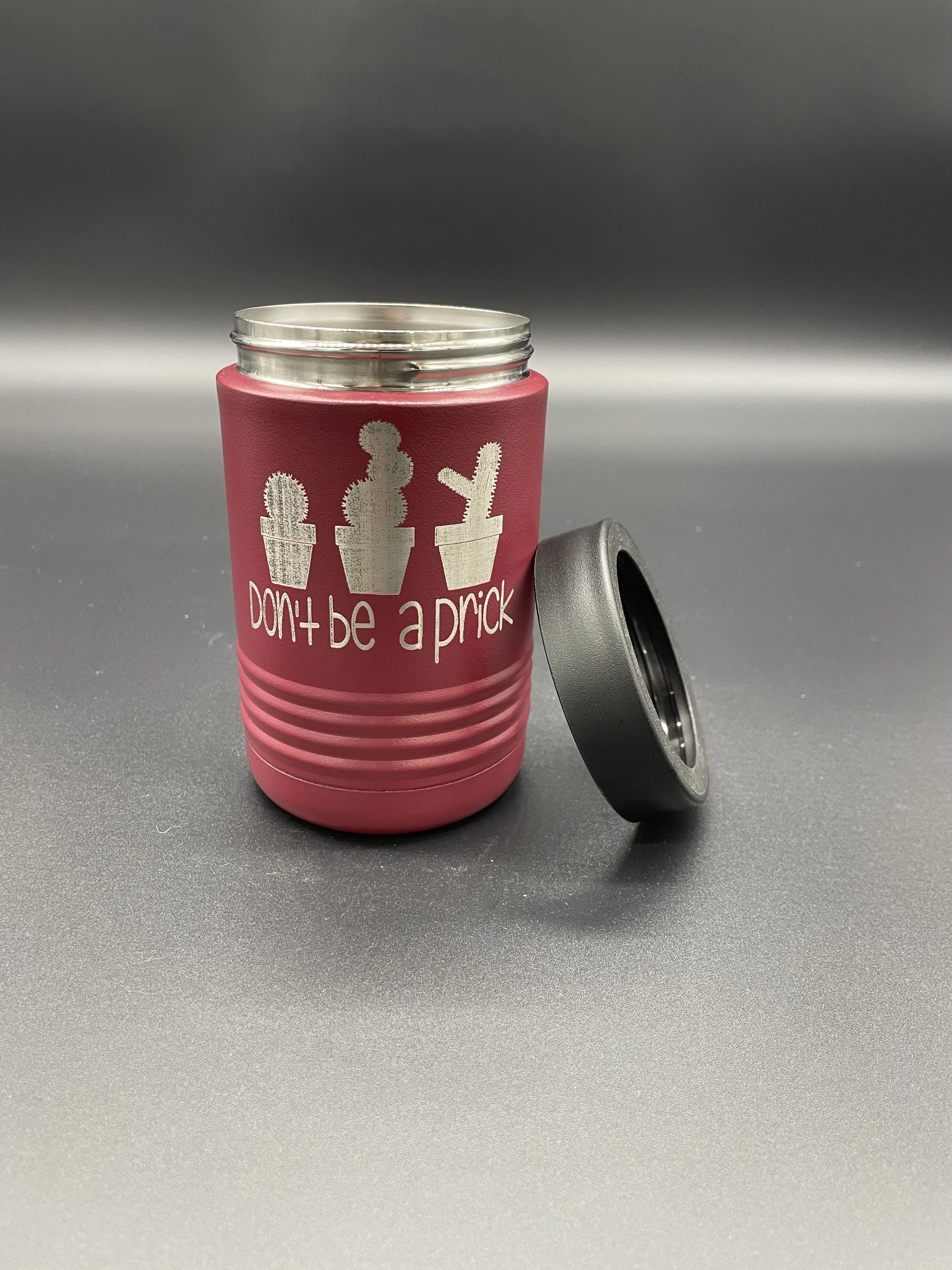 We offer a wide variety of drinkware options. Polar Camel Tumblers, wine glasses, insulated wine tumblers, flasks, shot glasses, insulated can coozies, beer mugs, water bottles, and more. All can be customized how you like. We offer one sided, two sided, and even full wraps!